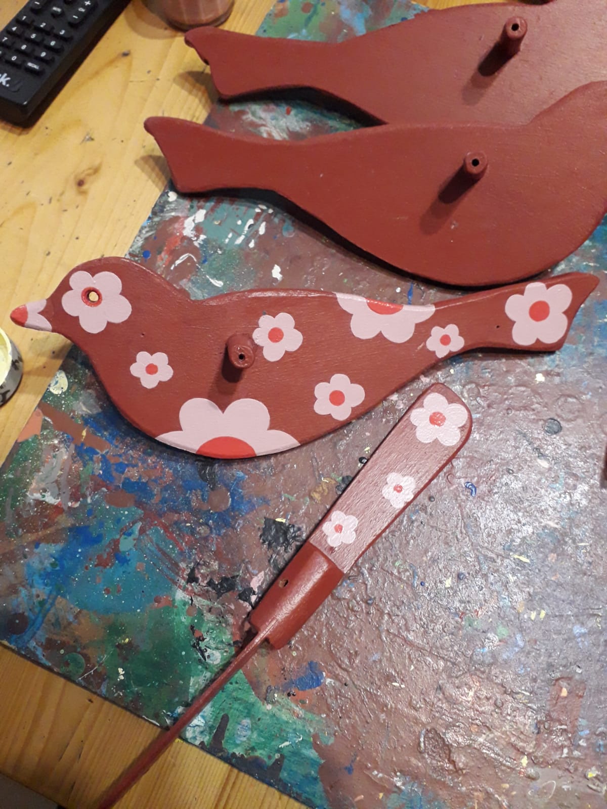 Fioruccello -colombo a fiori su sfondo verde o rosso, in multistrato marino di betulla, L 25 x h 8 cm, colorato con vernici all'acqua da esterno con un'alta resistenza alle intemperie e al passare del tempo. Questi colombi vengono forniti completi di un'asta di supporto in legno naturale da potatura e di un cordino nautico per il fissaggio. I Fioruccelli sono un articolo nuovo, molto particolare e danno un tocco di originalità e colore ovunque li metti!